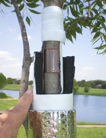 Dynagage包裹式傳感器利用能量平衡原理,通過測量植物蒸騰時水分運輸產(chǎn)生的熱量變化,進而確定植物的莖流速度,這是目前測量植物莖流可靠的技術(shù)方法。